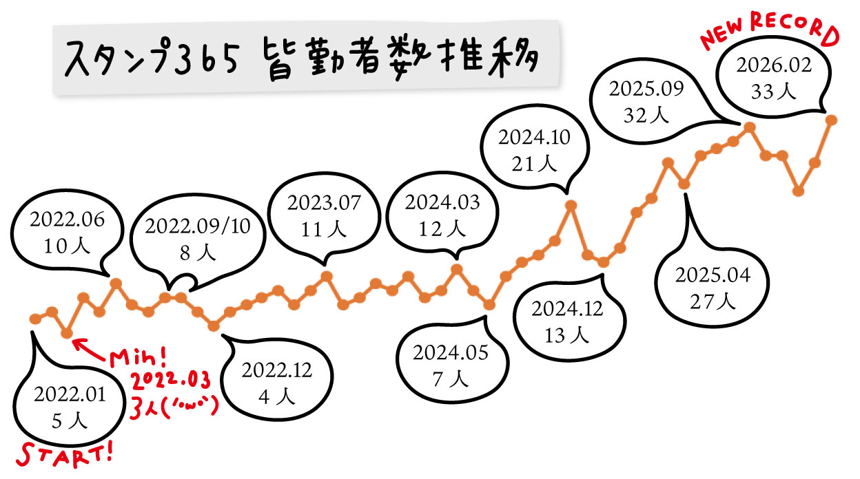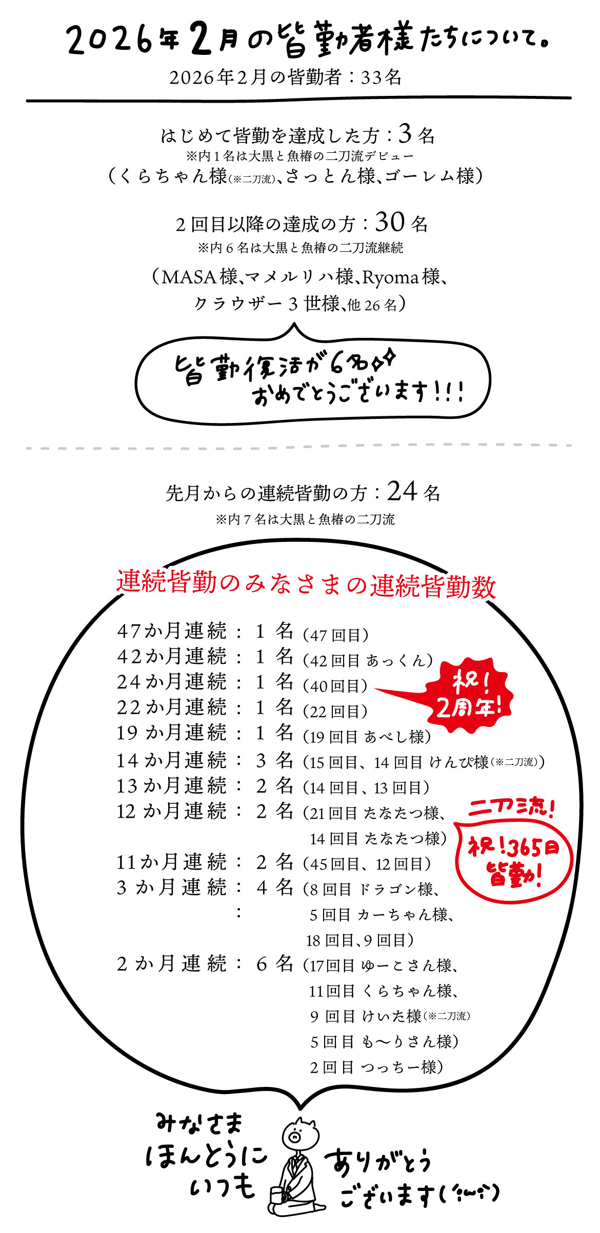 今月も皆勤者数発表の