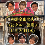 こんにちはー!!大黒金山店です! しずねぇの店長就任を祝して皆さんで盛り上がりましょう! 限定フード、ドリンク沢山ご用意しておりますのでお待ちしております!