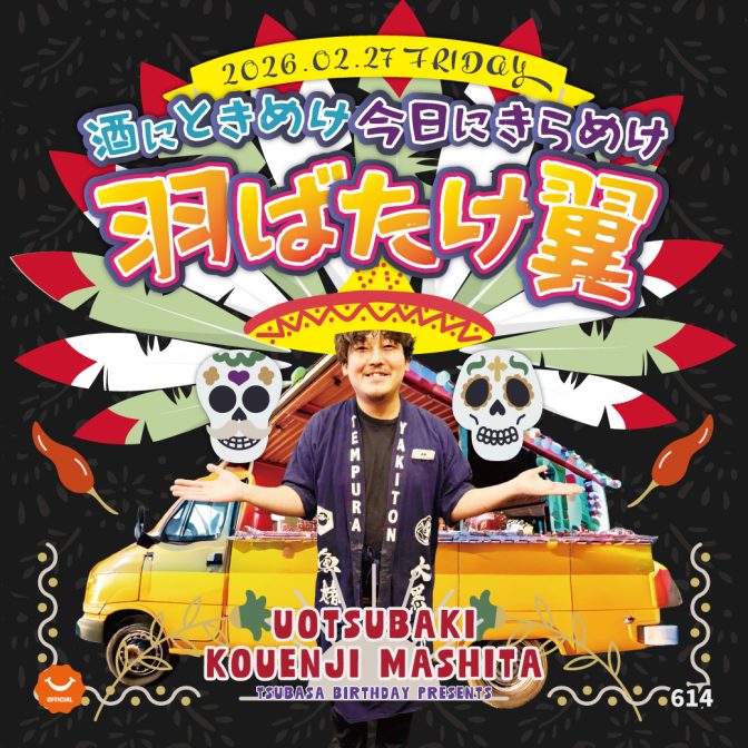 酒にときめけ 今日にきらめけ 羽ばたけ翼 2026.2.27 誕生日イベント魚椿 高円寺マシタ店 どうも!つばさです!! 今年もやってまいりました! つばさ今回は羽ばたくのか?!ぜひ高円寺で勇姿を見届け下さい 2026年もつばさ愛したメキシカンをたっぷりとご堪能あれ 遠藤翼 < 前のイベントへ 次のイベントへ >