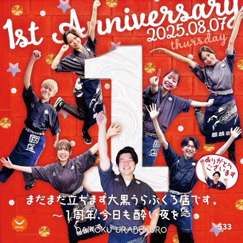 皆様のおかげでこの度1周年を迎えることができました。 日頃の感謝とこれからもよろしくお願いしますを込めてこの周年祭は皆様に歓迎祭りをしたいと思います。 最高に楽しんでいきましょ!! 皆さん当日はうらぶくろ店でお待ちしてお…