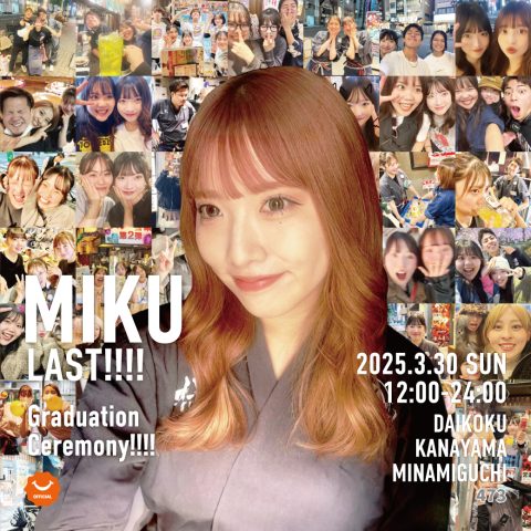大黒金山南口店のみくです❗️ ついについに卒業です❗️ 約3年半、お世話になった皆様に 最後に感謝を沢山伝えさせてください❗️ ほーーんとに最後ですよ❗️笑 お待ちしてます☺️❤️